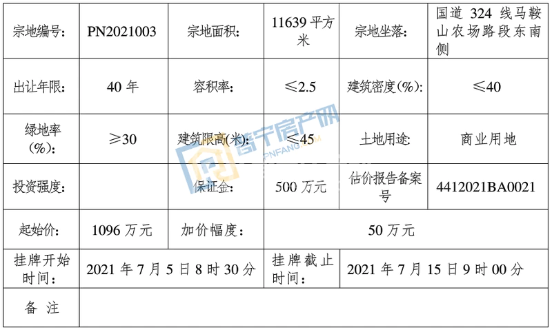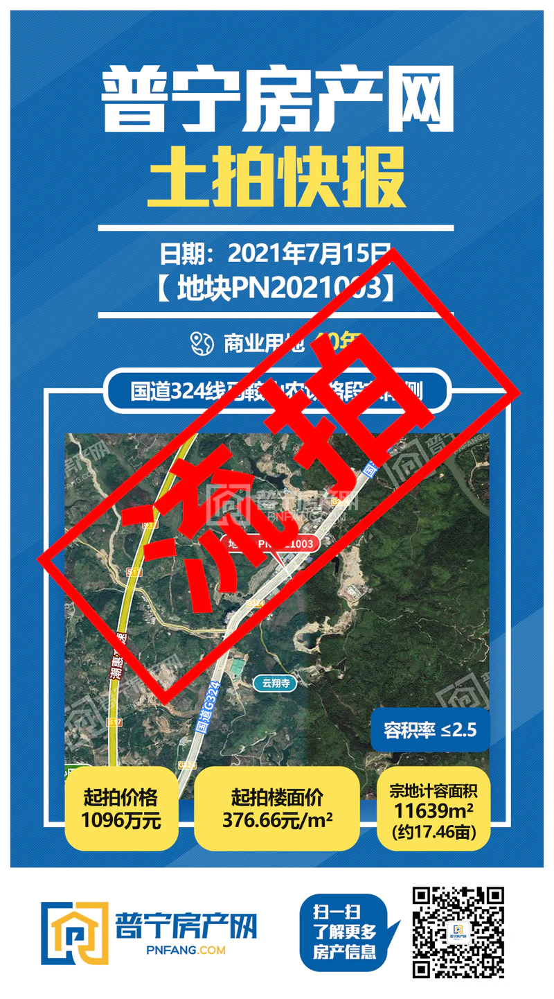 PN2021003地块占地面积11639平方米,起拍价1096万元,起拍楼面价376.66元/㎡,为40年商业用地,该地块因无人出价意外流拍。