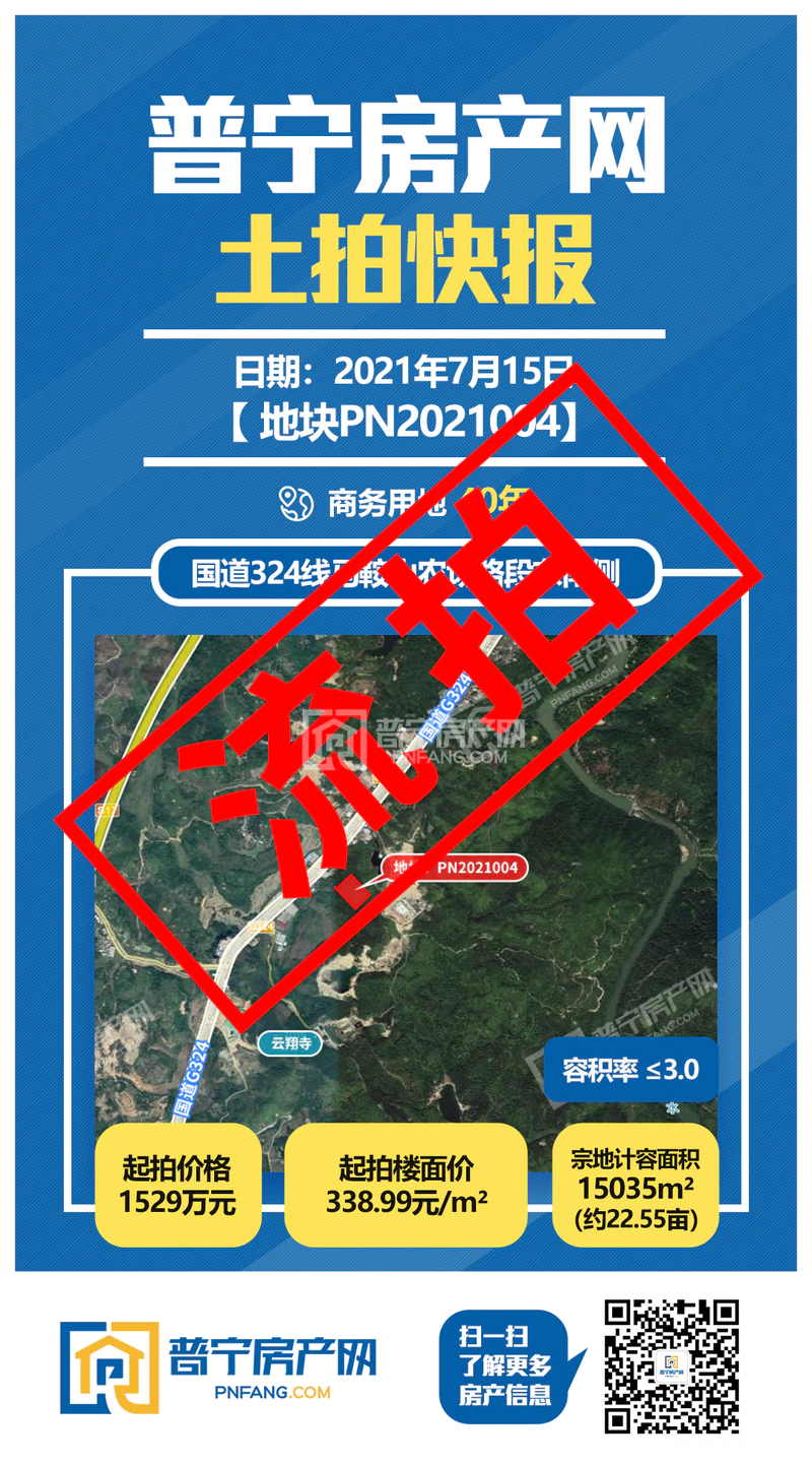 PN2021004地块占地面积15035平方米,起拍价1529万元,起拍楼面价338.99元/㎡,为40年商务用地,该地块因无人出价意外流拍。