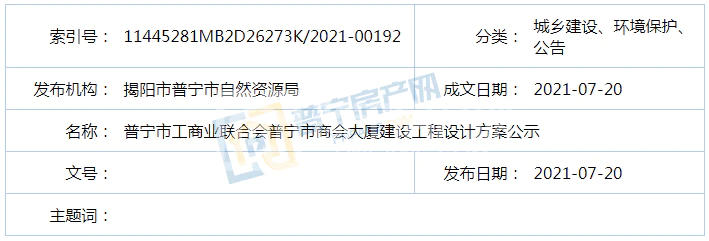 近日,普宁市工商业联合会普宁市商会大厦建设工程设计方案对外公示,占地面积5亩,将建设1栋环境优美、设施配套完善的15层办公楼。具体内容如下: