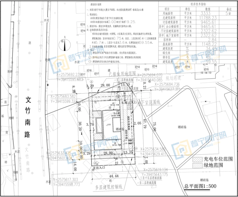一、本图为普宁市商会大厦总平面图,本次规划报建1栋高层办公楼。