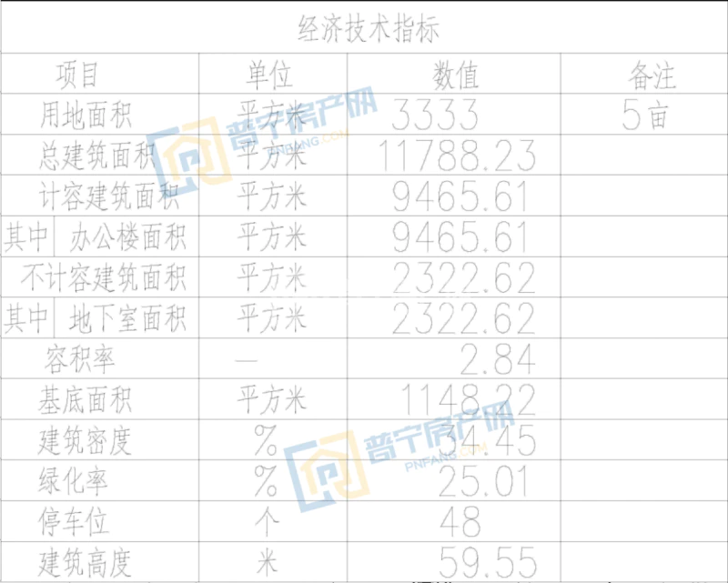 建筑物层高:室内外高差为0.75米,首层、二层层高为6米(二层塔楼范围外为5.7米),三层至十五层为3.6米,总建筑高度为59.55米。