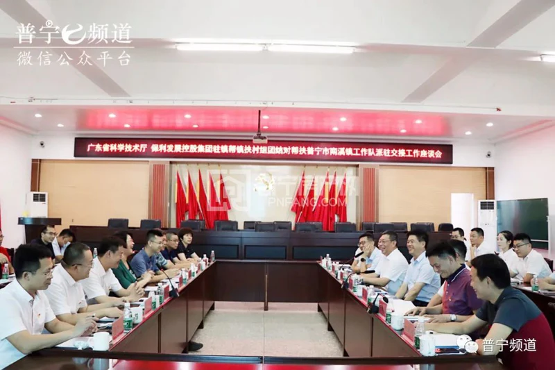 工作队一行在普宁市副市长王粉娟、揭阳市科技局副局长林惠生、南溪镇镇长詹汉龙的陪同下,通过实地走访和召开座谈的方式,了解了南溪乡村振兴工作开展情况。在座谈会上,王粉娟副市长首先对各位领导和工作队的到来表示欢迎,随后省科技厅、保利发展控股集团、揭阳市科技局、南溪镇相关负责人分别进行了交流发言,就南溪镇乡村振兴驻镇帮扶工作进行对接。