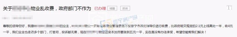 近日,普宁有业主通过相关部门反映某楼盘物业乱收费,投诉无果,具体内容如下: