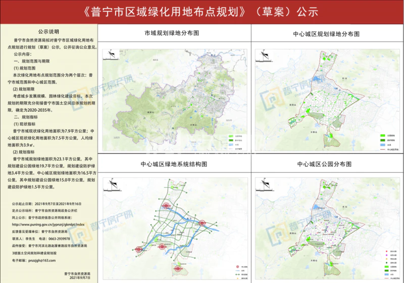 今天,普宁市自然资源局对普宁市区域绿化用地布点规划进行规划(草案)公示,据小房君统计,此次规划中心城区绿地系统结构涵盖五大中心绿地公园,中心城区公园分布包含14个综合公园,2个森林公园,3个带状公园。现公开征询公众意见。具体公示内容如下: