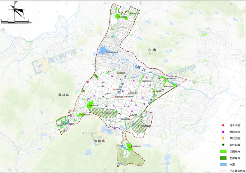带状公园:新城滨河公园、流沙滨河公园、高铁滨河绿道