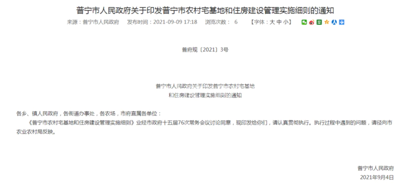 近日,小房君从普宁市人民政府了解到,《普宁市农村宅基地和住房建设管理实施细则》业经市政府十五届76次常务会议讨论同意。本细则自印发之日起施行,有效期5年。