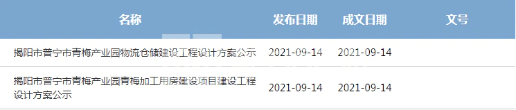 普宁市青梅产业园物流仓储建设工程设计方案公示