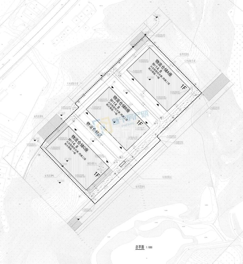 2、建筑高度:三栋物流仓库滴水高度均为14.8m