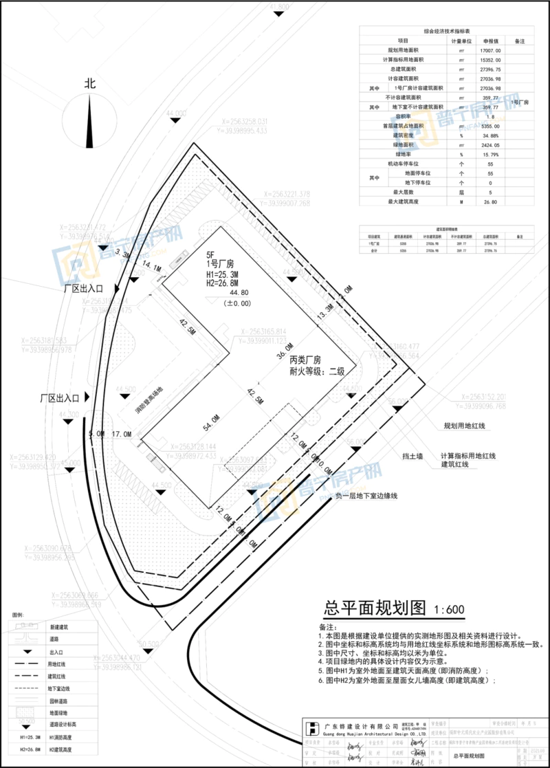5.建设规模:1幢5层厂房,总建筑面积27396.75㎡。
