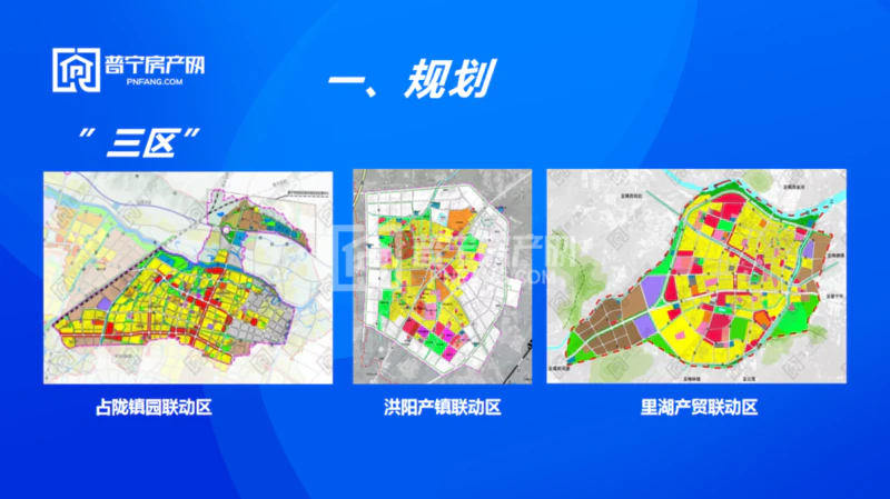 三区:占陇镇园联动区、洪阳产镇联动区、里湖产贸联动区