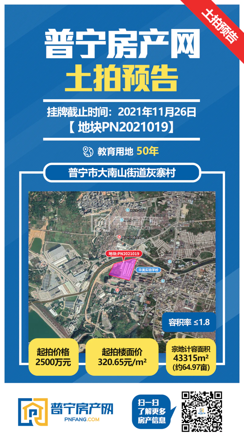 今天,小房君从揭阳市公共资源交易中心了解到,经普宁市人民政府批准,普宁市自然资源局以网上挂牌方式出让二幅地块的国有建设用地使用权,一宗为城镇住宅用地兼容商业用地,一宗为教育用地(中小学用地),合计总出让面积44361平方米(约66.5亩),总起拍价3350万元。现将有关事项公告如下: