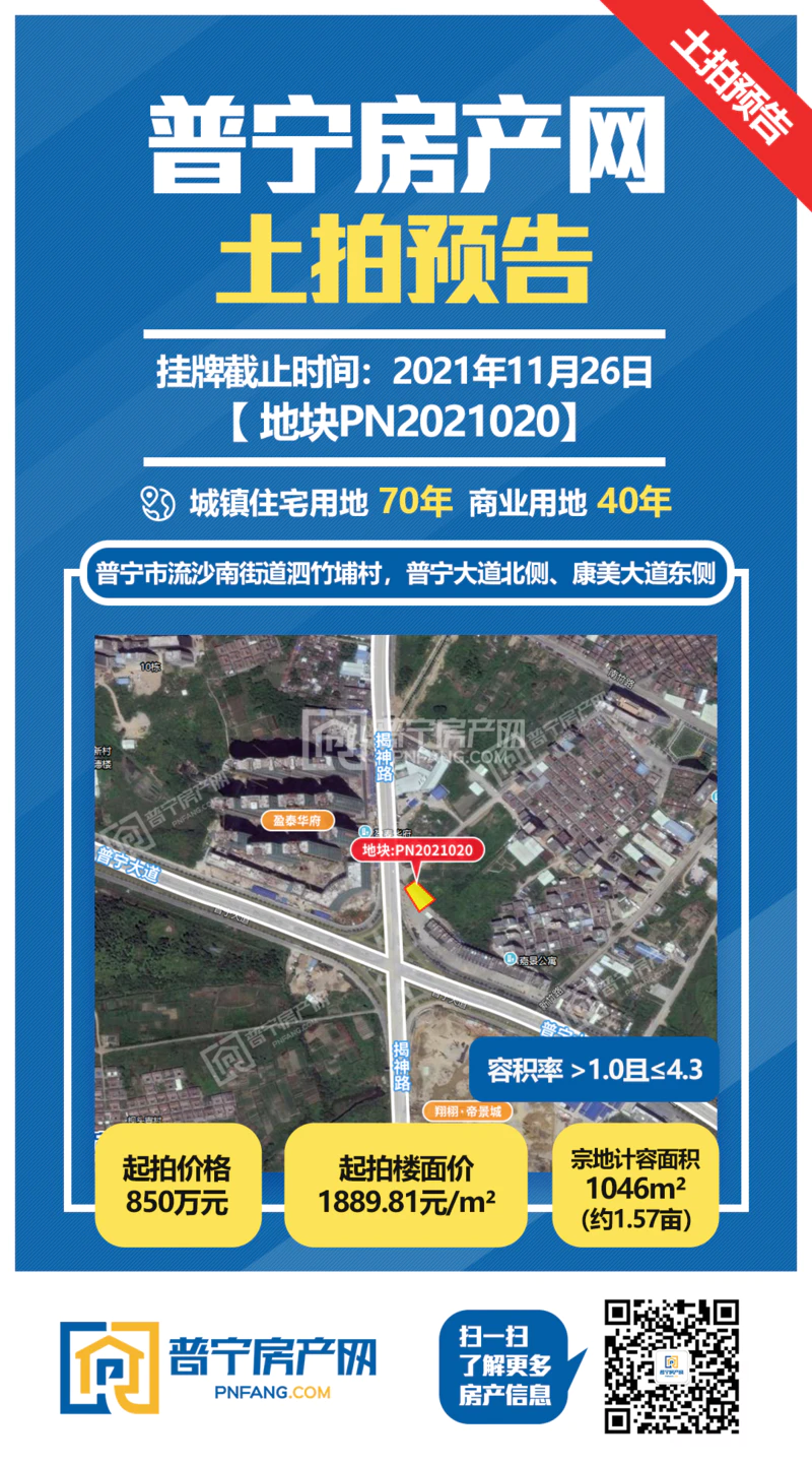 宗地坐落:普宁市流沙南街道泗竹埔(楼盘详情户型图相册地图)村,普宁大道北侧、康美大道东侧