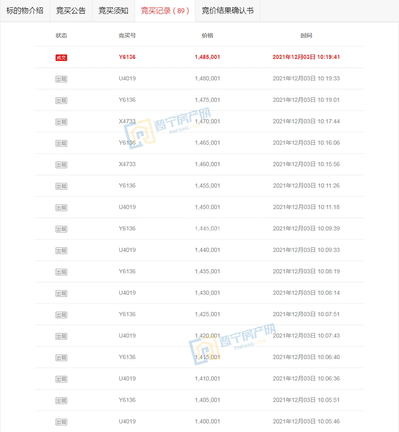 1元起拍,89轮出价,148.5万成交。