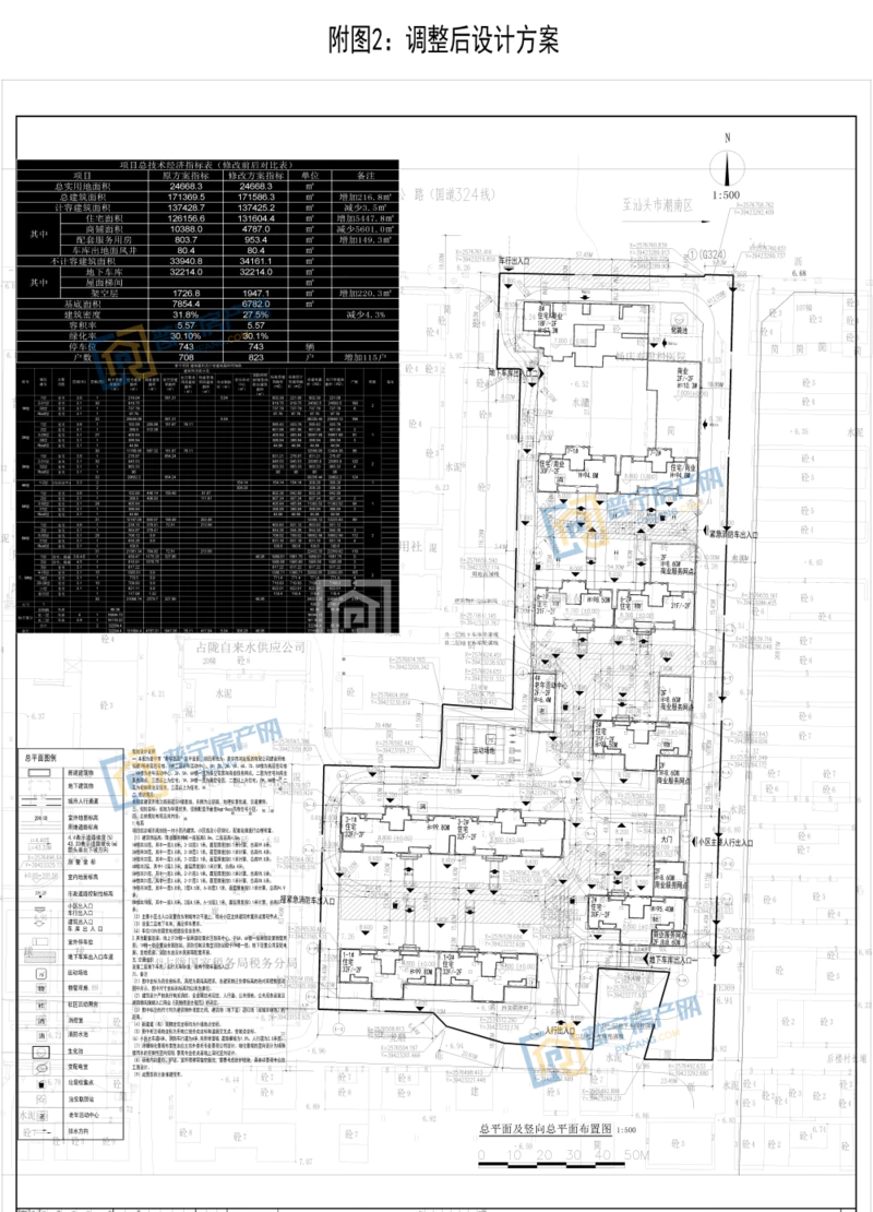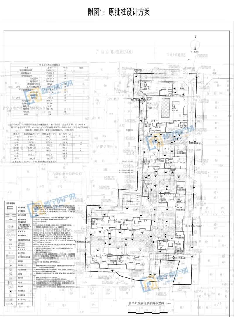 “新华名园”项目位于占陇镇占杨村广汕公路南侧,建设工程规划许可证列:建字第4452812020G001号。项目原设计方案(见附图1)为:7幢18层至32层商住楼、1幢2层老人活动中心、2层地下室,总建筑面积171370平方米。