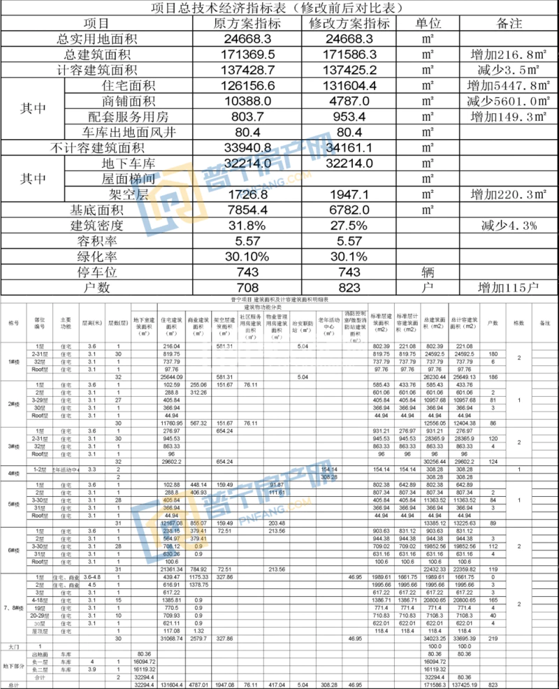 调整后的设计方案(见附图2)为:7幢18层至32层商住楼、1幢2层老人活动中心、2层地下室,总建筑面积171586平方米(比原来增加建筑面积216平方米,用途为架空活动空间)。