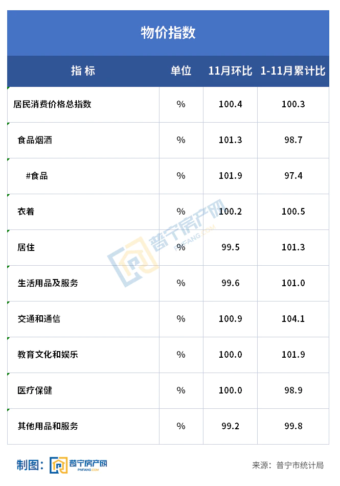 1-11月,全市居民消费价格指数(CPI)累计上涨0.3%,涨幅比全省(0.8%)少0.5个百分点。其中,食品类下降2.6%,降幅比1-10月缩小0.2个百分点。
