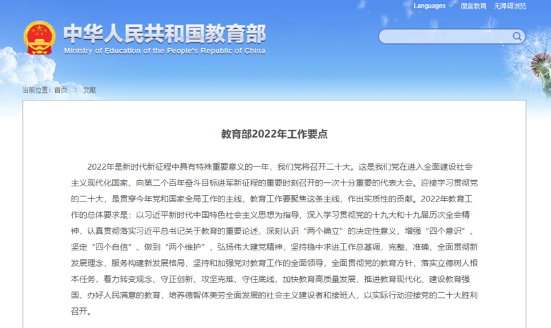 2月8日,教育部官网公示了《教育部2022年工作要点》,其中第15条明确提出:
