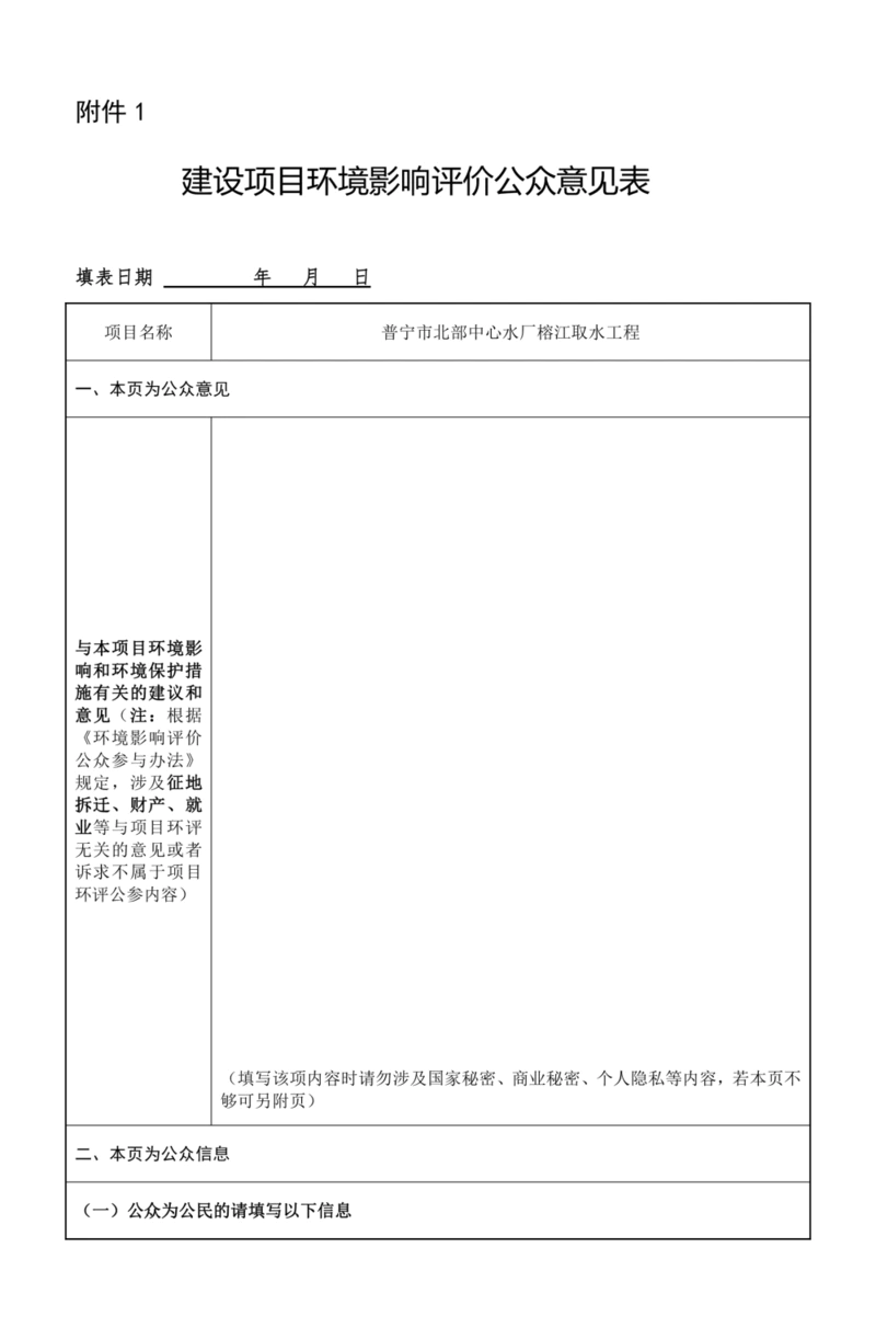 公众意见表的网络链接见:附件1。