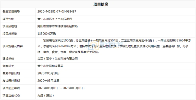 项目建成后将成为粤东地区无废城市、固体废弃物综合循环利用的典型示范项目。