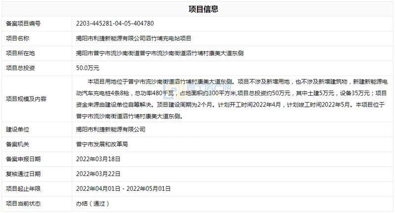 项目名称:揭阳市利捷新能源有限公司泗竹埔充电站项目