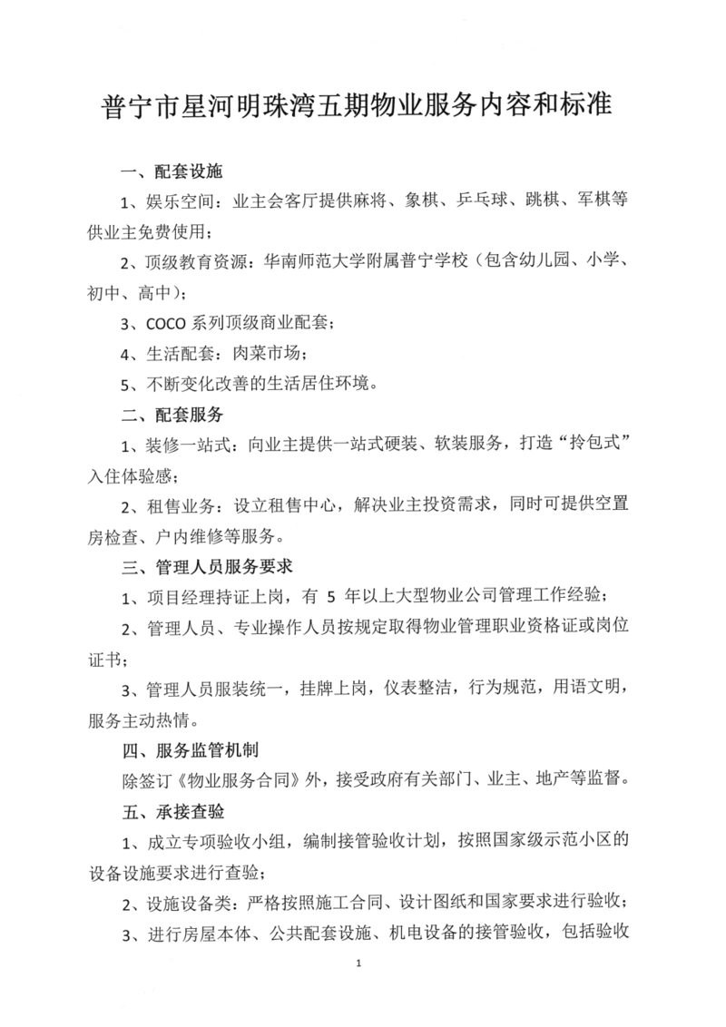 附件:普宁市星河明珠湾五期物业服务内容和标准。