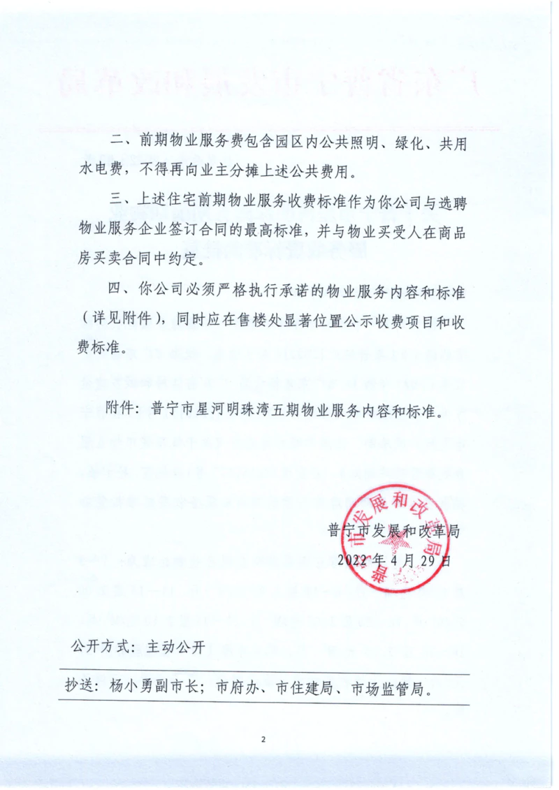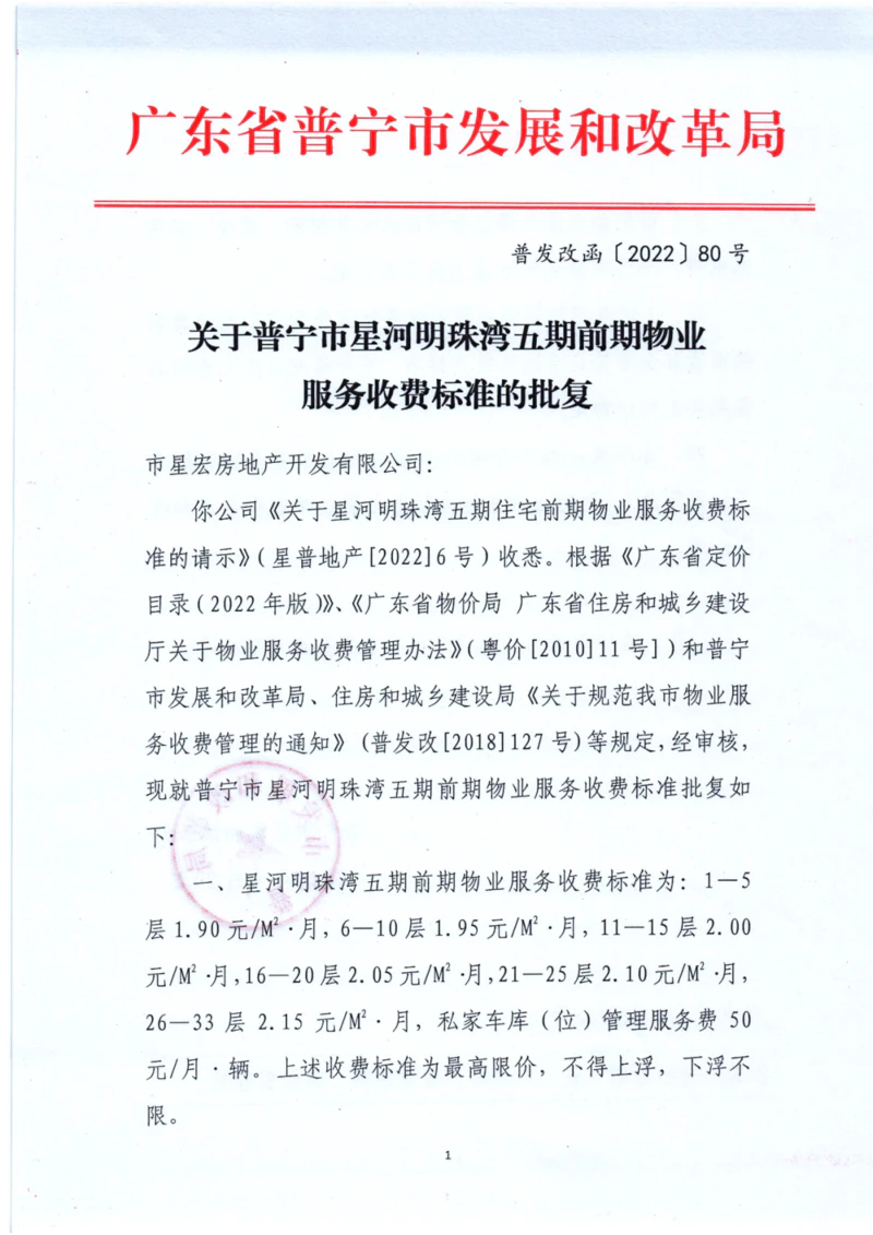关于普宁市星河明珠湾五期前期物业收费服务标准的批复
