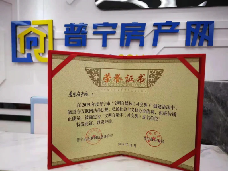 普宁房产网被评为2019年度普宁市“文明自媒体”(社会类)提名单位