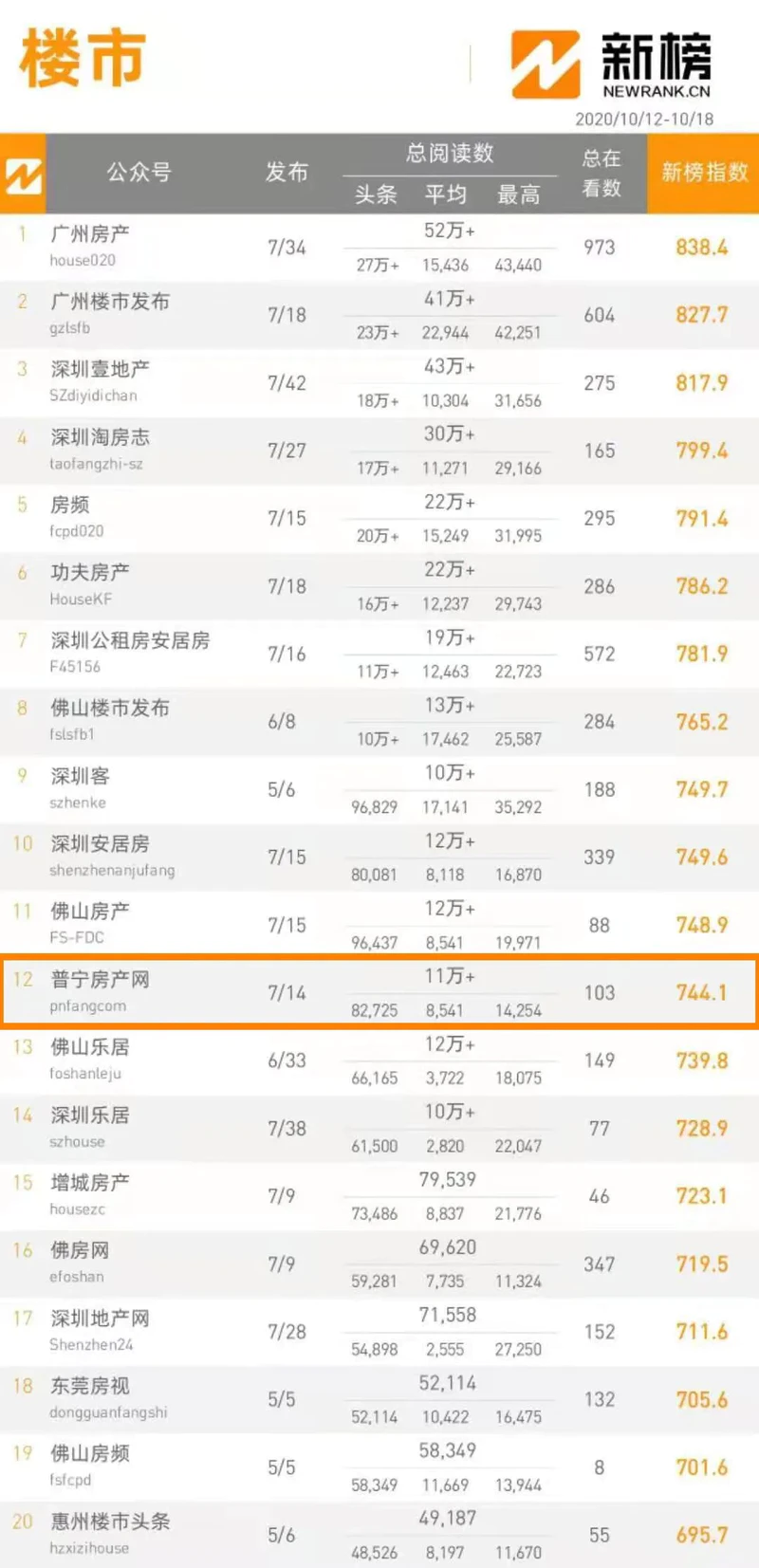 普宁房产网入选新榜【广东楼市TOP20】榜单