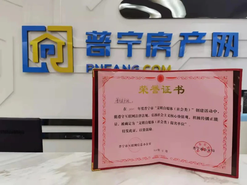普宁房产网被评为2020年度普宁市“文明自媒体”(社会类)提名单位