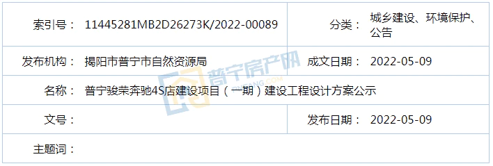 2.项目名称:普宁骏荣奔驰4S店建设项目(一期)