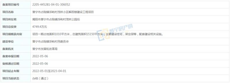 项目所在地:普宁市占陇镇浮屿村茂林公园后