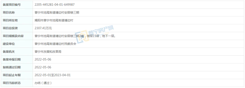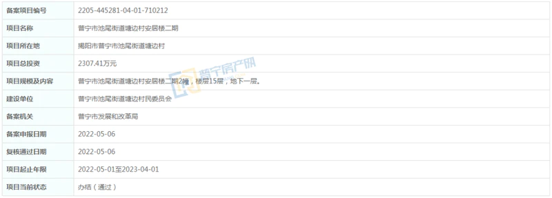 项目名称:普宁市池尾街道塘边村安居楼三期