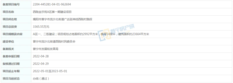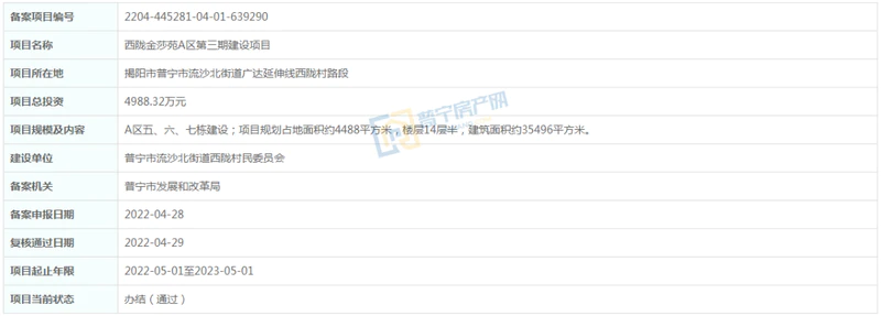 近日,据小房君了解,普宁多个项目通过备案,涉及塘边村安居楼一二三期、西陇金莎苑(楼盘详情户型图相册地图)A区一二三期、占陇镇浮屿村茂林小区解困楼、南山(楼盘详情户型图相册地图)社区楼房等项目,合计总投资27197.93万元,具体内容如下: