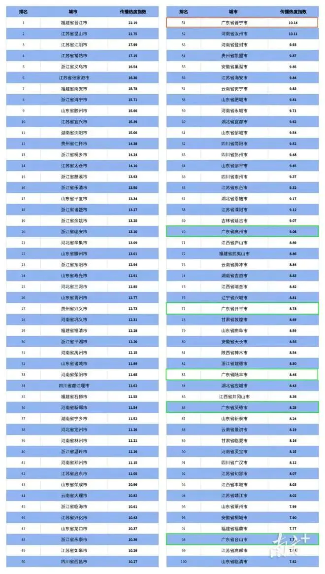 据了解,该名单由人民日报社属中国城市报社、中国城市品牌研究院联合中国传媒大学擘雅品牌研究院共同发布,并得到了中国品牌建设促进会、中国报业协会的支持。以全国394个县级市在2021年3月29日至2022年3月28日期间的有关数据为基础,经标准化计算,分别发布全国地级市、县级市传播热度指数排位前100的名单。