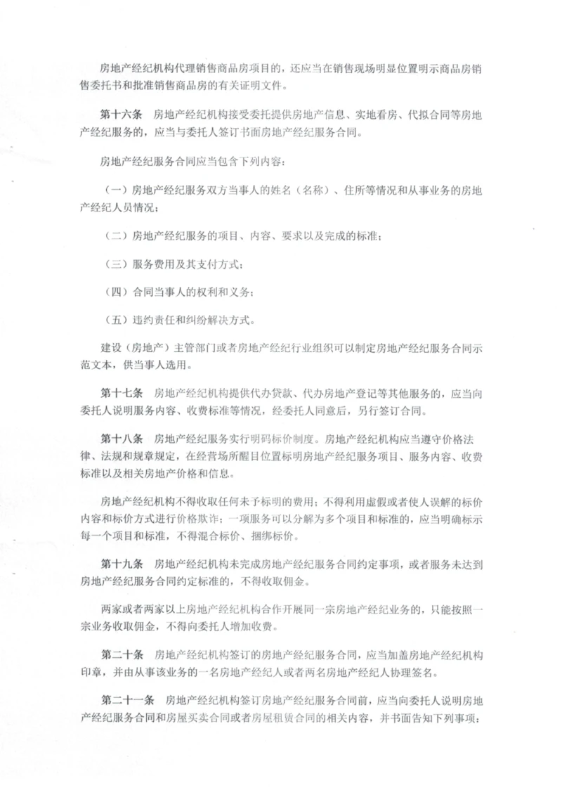 第十六条 房地产经纪机构接受委托提供房地产信息、实地看房、代拟合同等房地产经纪服务的,应当与委托人签订书面房地产经纪服务合同。