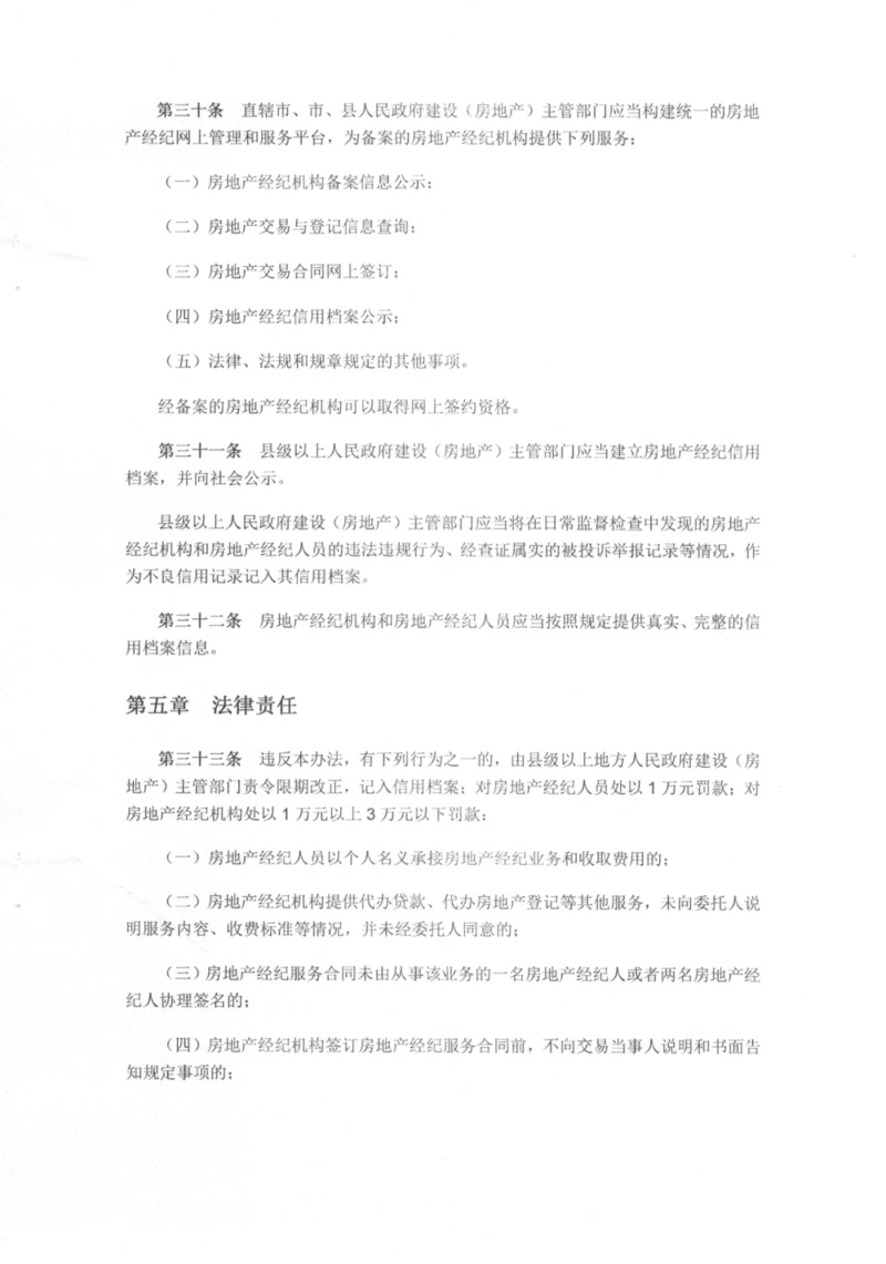 第三十条 直辖市、市、县人民政府建设(房地产)主管部门应当构建统一的房地产经纪网上管理和服务平台,为备案的房地产经纪机构提供下列服务: