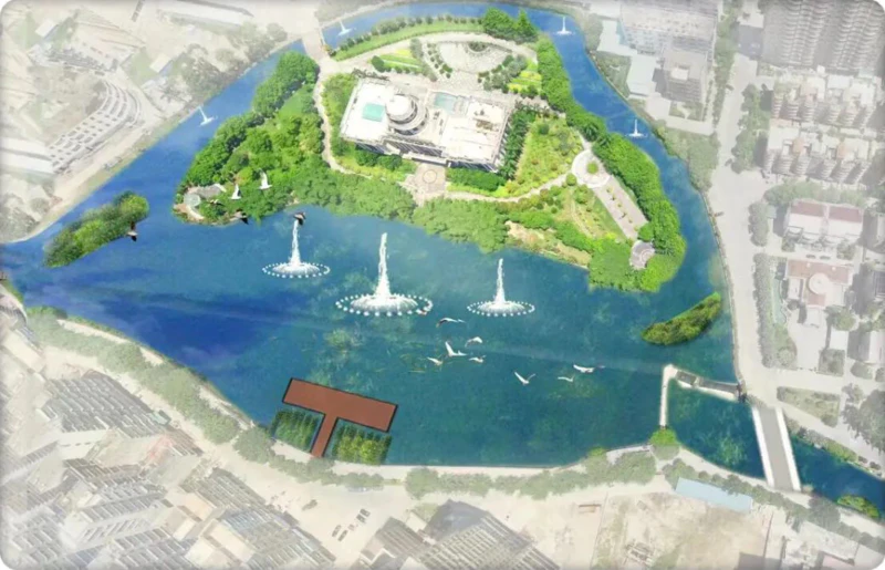 集水质净化厂、流沙新河、生态稻田于一体