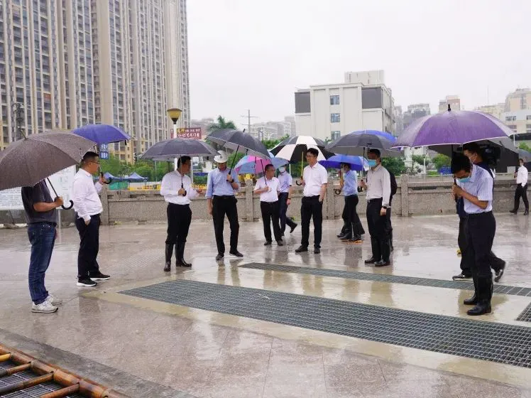 在中信桥东侧,黄锐亮认真检查市区东西箱涵雨天排洪情况,对强降雨防范工作进行部署,要求有关单位要加强日常巡查、安全围挡与管网清淤,并以本次降雨为契机,全面排查“问题”管网,做好农村污水接驳工作,加快完善排水排涝系统。