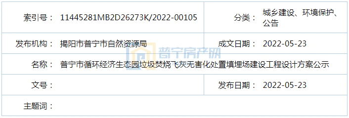 普宁市循环经济生态园垃圾焚烧飞灰无害化处置填埋场建设工程设计方案公示