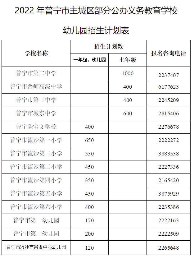 关于2022年普宁市主城区部分公办义务教育学校、幼儿园招生的公告