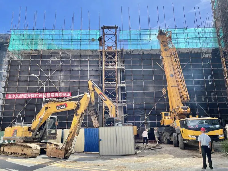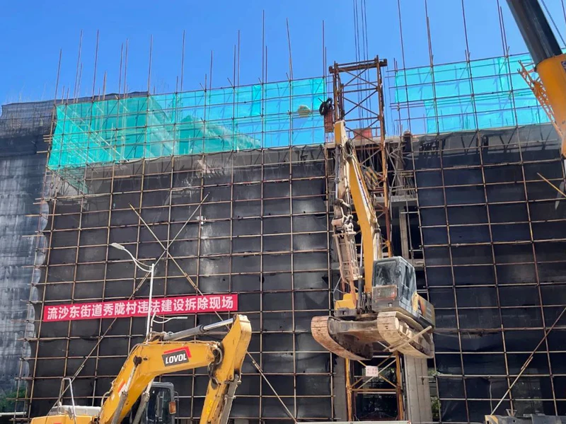 为推进我市控停拆违在建违法建设工作,打好违法建设治理攻坚仗,8月22日上午,市城管执法局联合流沙东街道等部门开展联合执法行动,出动大型拆除机械3台,组织120余名工作人员到现场,对秀陇村一处占地面积约1350平方米、建筑面积约6000平方米的在建违法建设予以依法拆除。