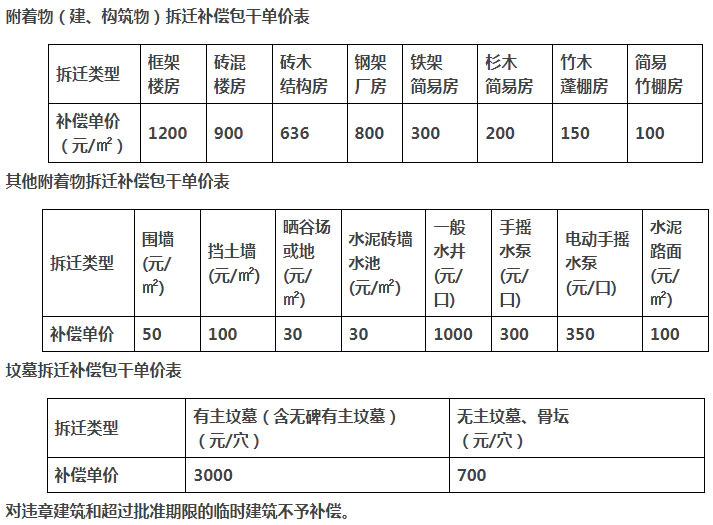 (三)附着物(建、构筑物)拆迁补偿标准: