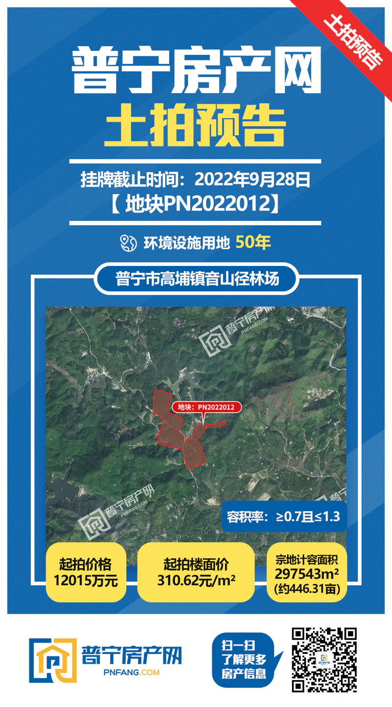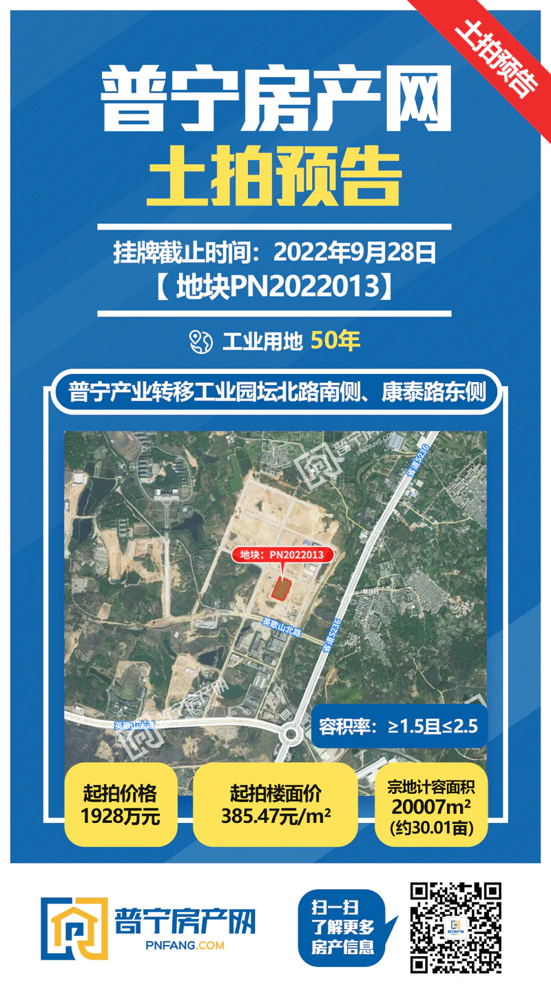 9月土拍大战即将打响!继9月9日普宁三宗地块即将开拍(相关链接:土拍来了!普宁三地块挂牌出让,总起拍价4124万!)今天普宁市自然资源局又以网上挂牌方式出让三幅地块的国有建设用地使用权,将于9月28日开拍。其中两宗为环境设施用地,一宗为工业用地,合计出让面积324760平方米(487.14亩),总起拍价14395万元。具体内容如下: