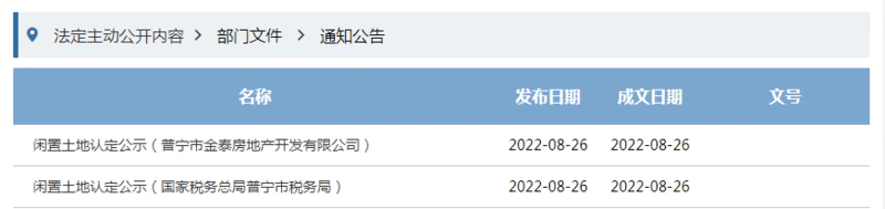 闲置土地认定公示(国家税务总局普宁市税务局)