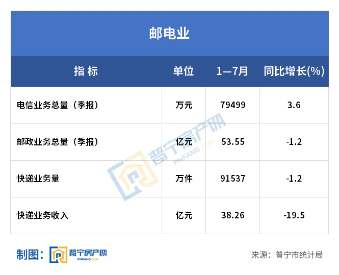 1-7月,全市实现社会消费品零售总额178.05亿元,增长1.6%。全市电子商务交易额404.05亿元,增长0.2%,快递业务量9.15亿件,下降1.2%,快递业务收入38.26亿元,下降19.5%。
