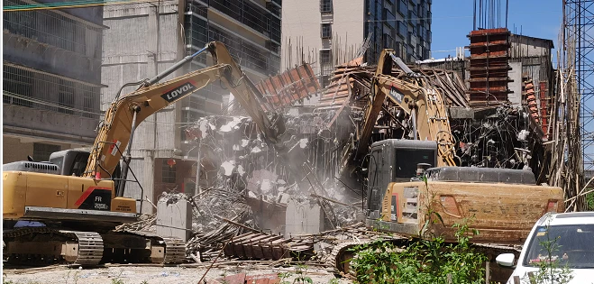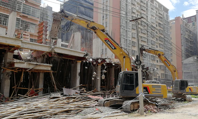 本次行动共组织人员100多人,出动3台大型风炮和切割机等多部机械,依法依规对位于乌石村三片的一宗违法建设予以拆除,拆除建筑面积约504平方米。