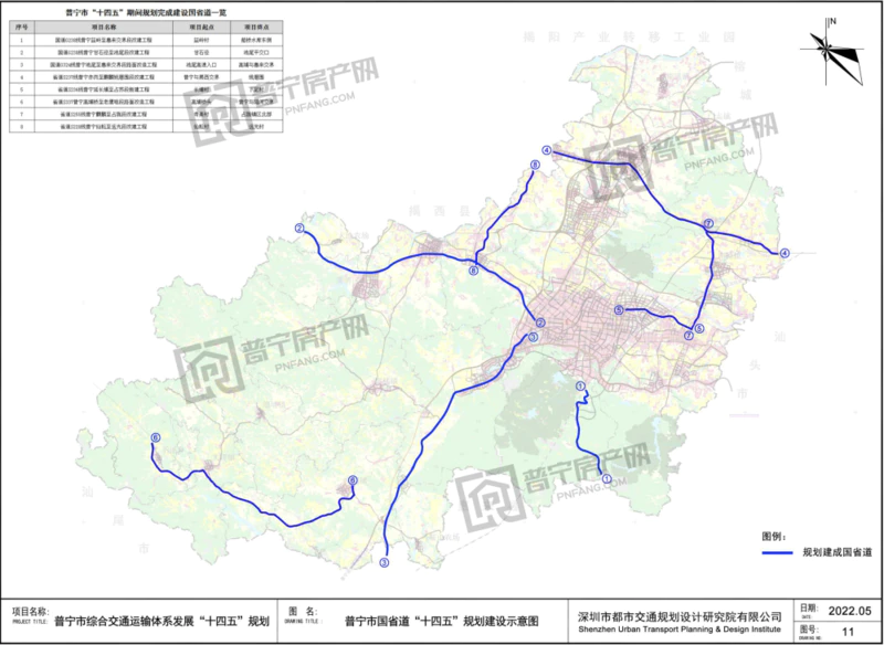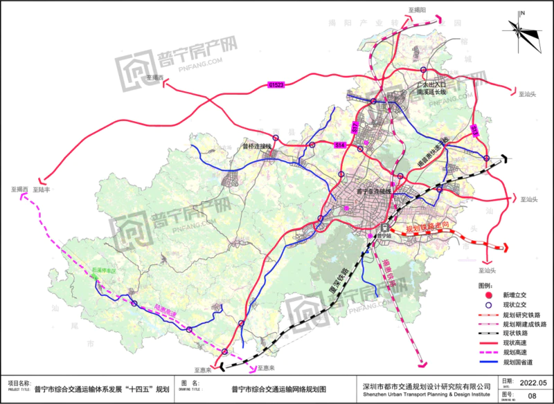 近日,普宁市人民政府发布了关于印发普宁市综合交通运输体系发展“十四五”规划的通知,据统计,“十四五”期间,我市重大交通基础设施建设项目计划投资1856945万元,包括铁路、高速公路、国省干线公路、县乡村道、客货运枢纽及物流园区等工程项目。具体内容如下: