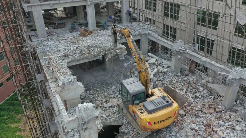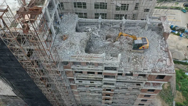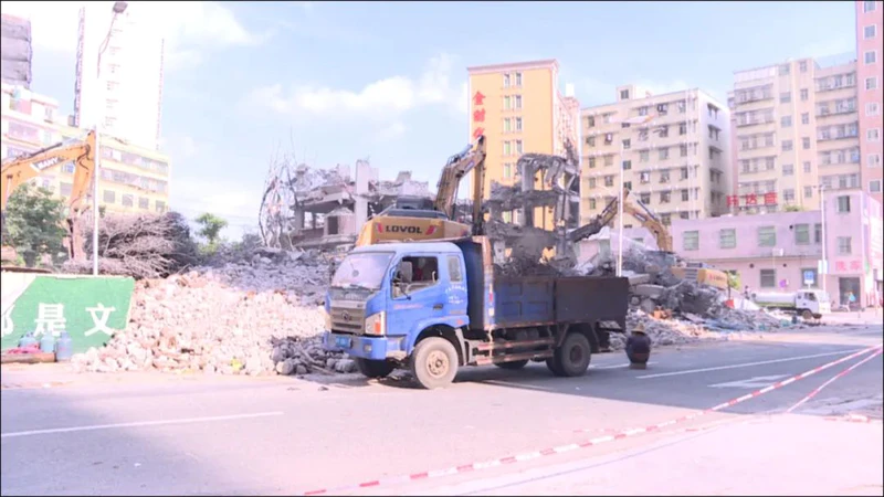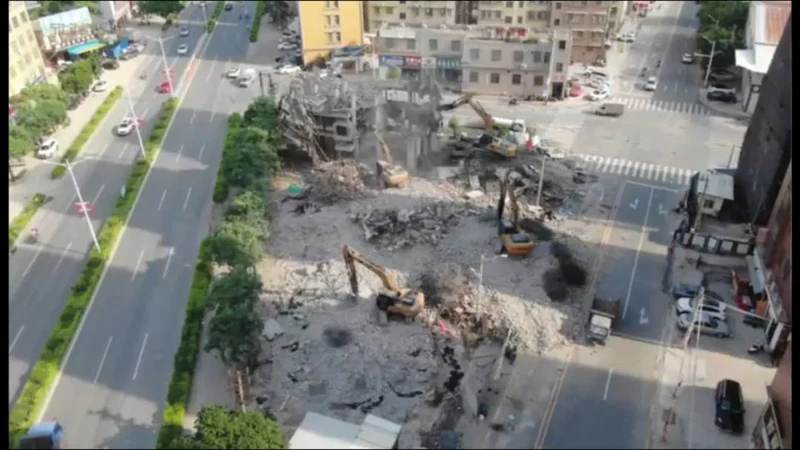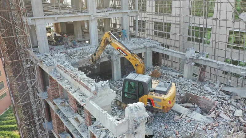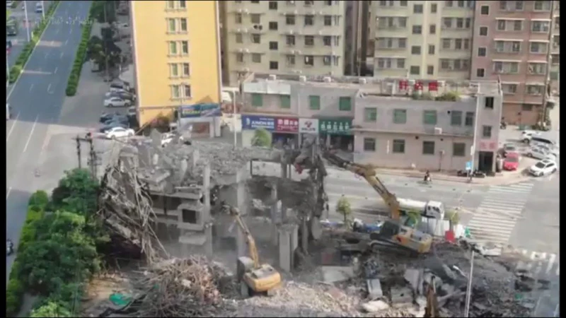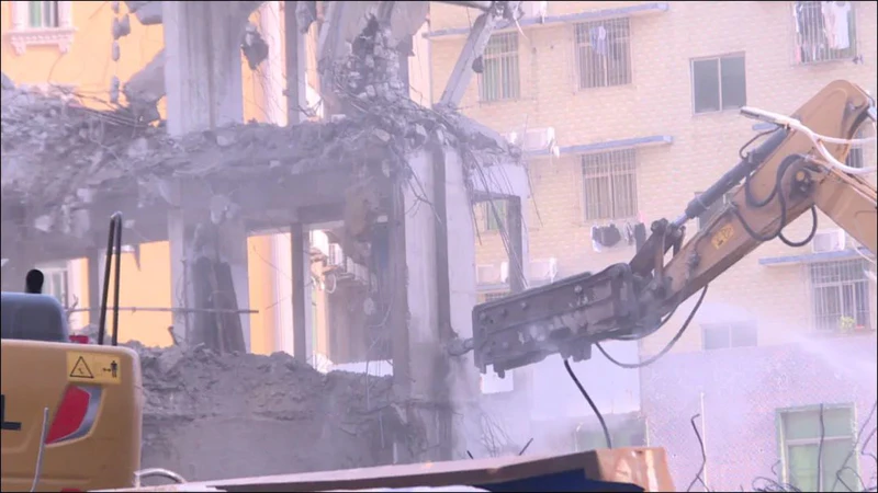 近日在拆除现场看到,风炮、吊臂车等大型机械还在忙碌工作着,做收尾工作。据了解,该宗在建违法建设已建至十层,违规超建三层。经过连日来的作业,违规超建的三层已全部拆除。