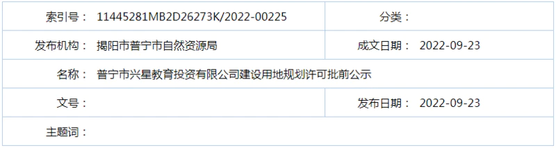 普宁市兴星教育投资有限公司建设用地规划许可批前公示