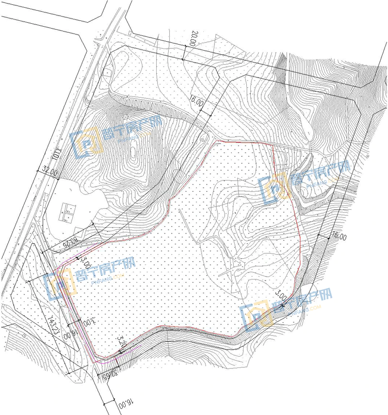 6.红点划线为用地范围线,品红线为机动车禁止开口线;
